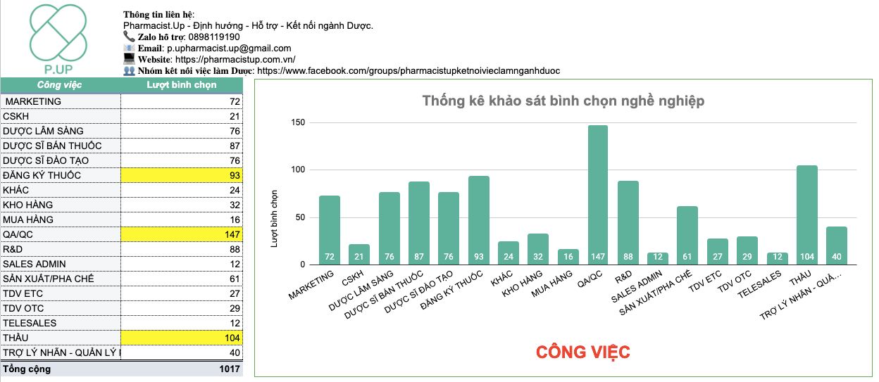 (Thông qua khảo sát được thực hiện bởi Pharmacist.Up, ngày 24/09/2024 tại nhóm: Pharmacist.Up kết nối việc làm ngành dược. Nội dung mang tính chất tham khảo.)