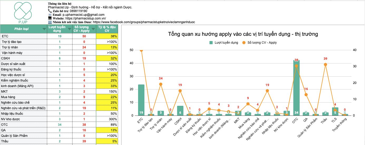 Tổng quan xu hướng apply vào các vị trí tuyển dụng (Thông tin lấy trên số liệu tuyển dụng của Pharmacist.Up)