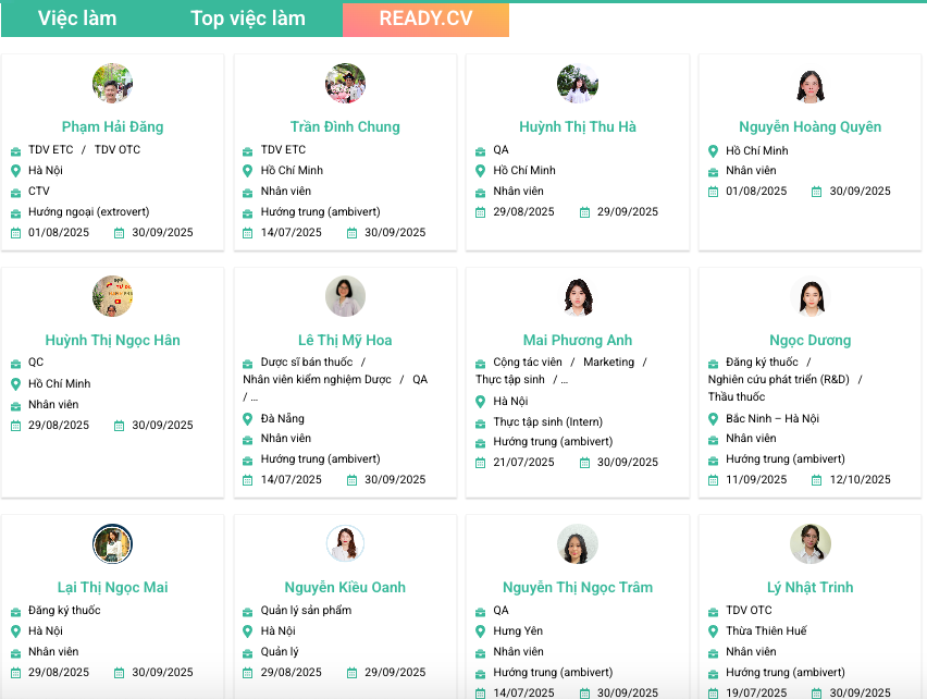 🎯 READY.CV được tạo ra để đồng hành cùng bạn: • Xây dựng CV cá nhân hóa, làm bật giá trị riêng – không bị hòa lẫn. • Thay vì bạn đi tìm, nhà tuyển dụng sẽ chủ động tìm đến bạn khi phù hợp. • Hồ sơ an toàn tuyệt đối, chỉ hiển thị khi bạn sẵn sàng. • Kết nối trực tiếp với nhà tuyển dụng ngành Dược, tiết kiệm thời gian và tăng cơ hội trúng tuyển.